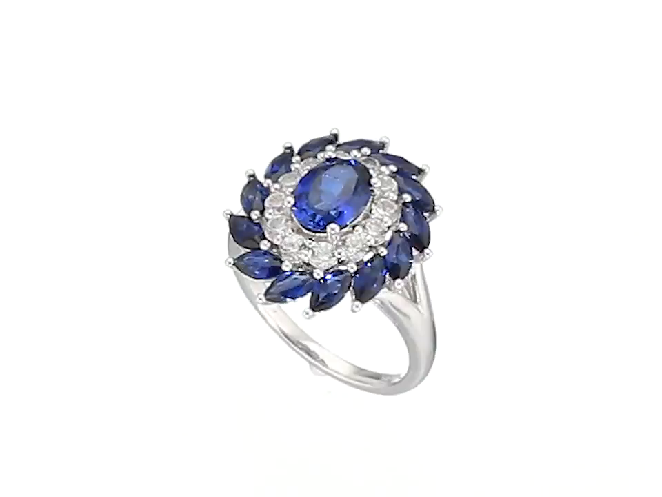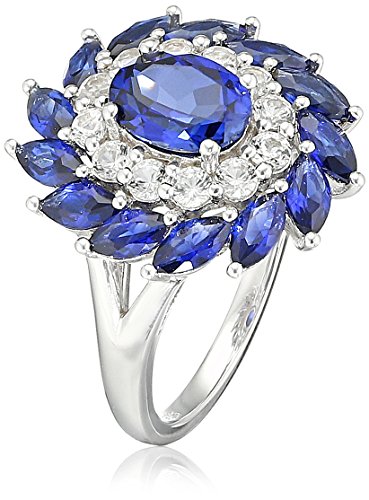 Sterling Silver and Created White Sapphire Flower Oval Ring, Size 7