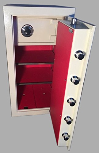 -. Feature : ½ inch thick solid steel door , ½ inch thick solid steel body (the + in B+) / Weight - More steel always means more securit, An inner, upper safe within the safe, with a 3/8" thick steel door and 2M dial lock. / Main door has LP Locks digital lock with lighted kepad. Inner-upper door has Big Red Group 2M dial lock / 2 fully adjustable shelves, Chrome 3-spoke handle, Four bottom anchor bolt holes / Complementary 1000°F fire document bag