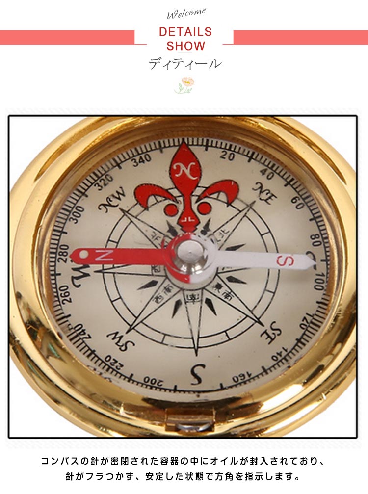 | ミニサイズのおしゃれなコンパス。針のフラつきが少なく、高精度。旅行や登山、キャンプなどにポケットに入る小さなサイズです。 | |