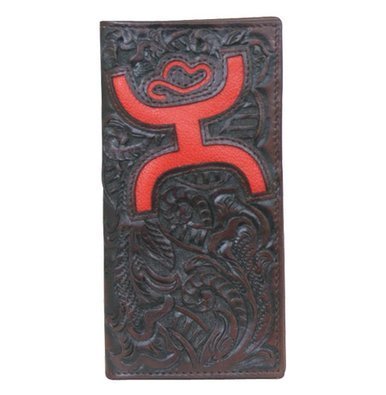 -. Title : HOOey Western Wallet Men Rodeo Signature Tooled Cutout Brown