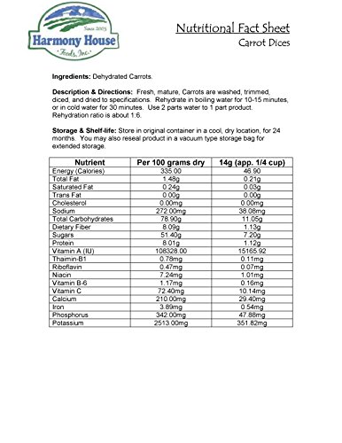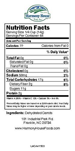 Harmony House Foods Dried Carrots, Diced (3 oz, ZIP Pouch)