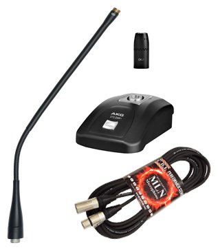 -. Feature : This bundle contains: (1) AKG STS DAM+ Heavy Duty Microphone Table Stand, (1) AKG GN30 M 11" Reference Gooseneck Module, (1) AKG CK41 Cardioid Condenser Microphone Capsule and (1) CBI MLN-25 25 Foot XLR Microphone Cable / Heavy duty shock absorbing gooseneck stand / Extremely red gooseneck construction / Sophisticated staple cardioid microphone capsule technology with 125 degree pickup angle / Great for use in theatres, houses of worship, conference rooms, court rooms, and a wide variety of spoken word applications