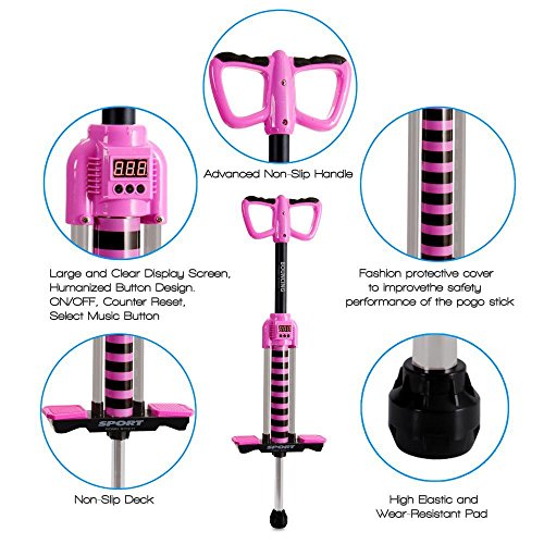 Studio : Dimple Publisher : Dimple Binding : Sports Product Description Features: Next Generation Smart Pogo Stick! Promotes Bone Growth to Help the Kids Stay in Shape Bounce with Beats: Built-in Button Activated Music Comfortable Non-Slip Handle Grips Digital LCD Display Screen Smart System Keeps Count of Each Bounce Safe, Durable Reliable Design Reinforced Anti-Slip Foot Pedals Designed for Ages 6 ? The Kids Will Have Fun While Exercising!