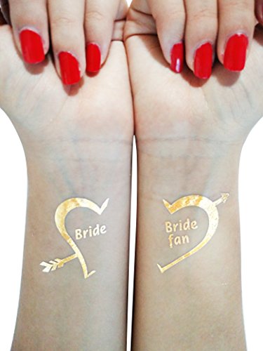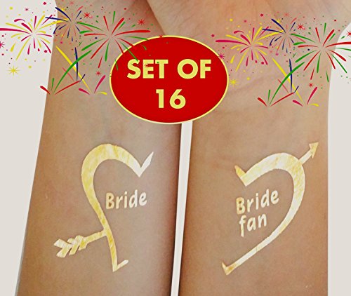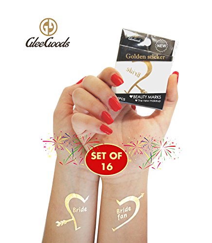GLITTER SET: You will get a total of 16 GOLD TEMPORARY TATS, 2 gold BRIDE and 14 gold BRIDE FAN.