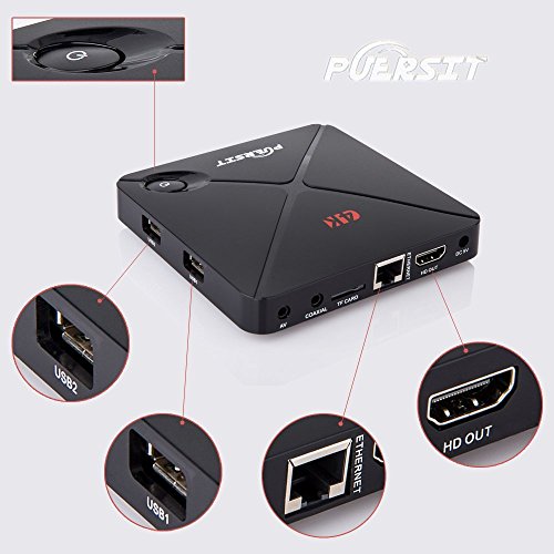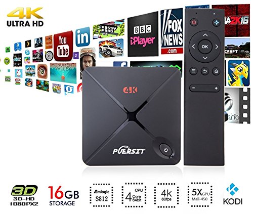 -. Feature : ✔PROFESSIONAL & SMOOTH - Puersit already registered in the US and has been filed in the Amazon.The box supports Root,True 1080p/4K Quad Core XBMC/Kodi HD Playback! High performance Amlogic S812 Quad Core Coretex-A9 Up to 2.0GHz CPU paired with the powerful Mali-450 Up to 400MHz Octo Core 3D GPU Graphics Processor = Insane Media Performance. Watch your favorite movies and live streams with vivid and smooth playback. / ✔KODI 16.0 & 16G ROM (EMMC) - Hook up a USB mouse (not included) and play your favorite Android games on the big screen!Built KODI 16.0 (XMBC) playback software to meet your video needs, 16G ROM (Samsung EMMC)+ 2G RAM (DDR3), EMMC process faster processing speed than other box five times, M9S EMMC ensure fast and stable operation, performance is more prominent. / ✔ANDROID Android 4.4.2 OS - Perfect run Android 4.4.2 OS operating system, compatible with the vast majority of Android APP,Quad-core CPU S812 core-53 2.0GHz to meet the needs of different users, games, film and television, monitor, etc. / ✔BANDWITH SAVING LIFING SPEED - H.265 hardware decoding can save 50% bandwith resources,let you watch the 4K movie smoothly.4K 1080i/P resolution is 4 times of full HD, so every detail of the screen is lucidity. / ✔PERFECT APPERARENCE - The appearance of high-grade acrylic, large vents, long runs, fast and stable,4 USB interfaces to meet the needs of different users.Support HDMI / AV OUT variety of video output, support WIFI b / g / n 802.1.1,4K RJ45, and other online mode, to meet different customer needs of different TV.