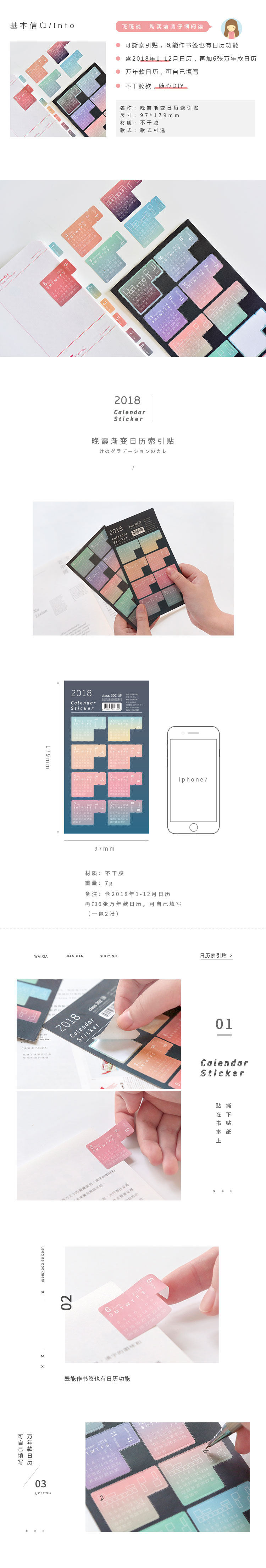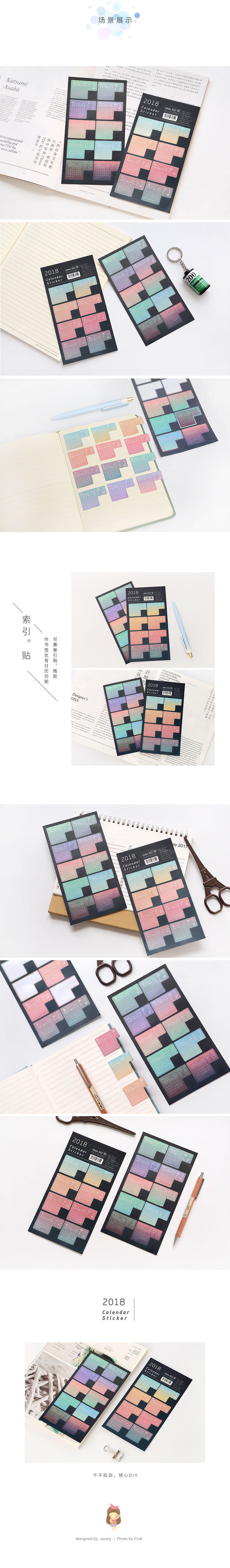 渐变万年日历索引贴手账本日记标签贴不干胶书签贴纸2张