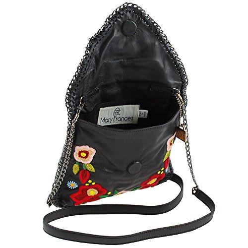 MARY FRANCES Budding Prospect Floral Embroidered Leather Mini Handbag with Chain Woven Edges