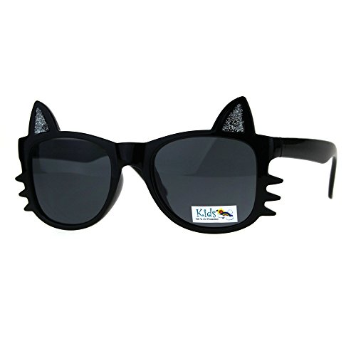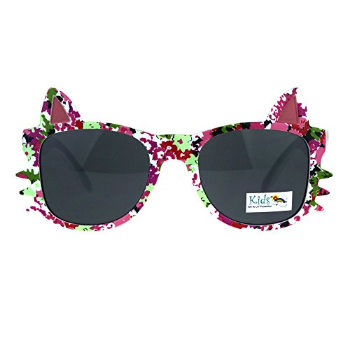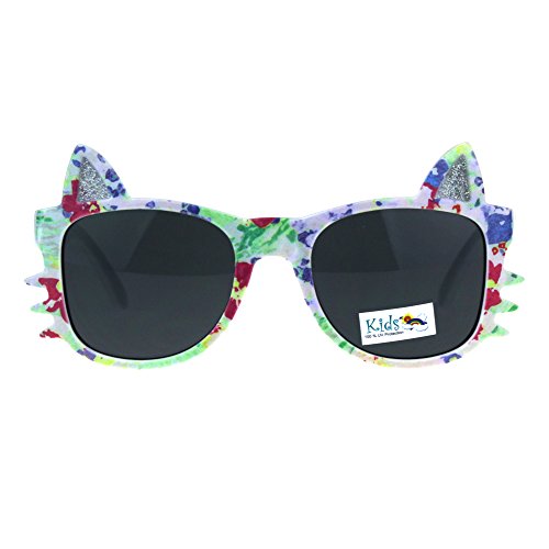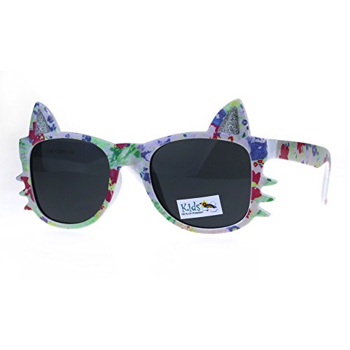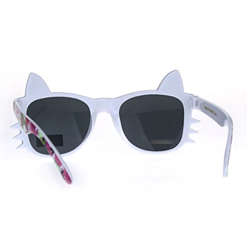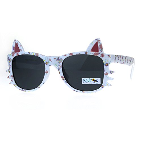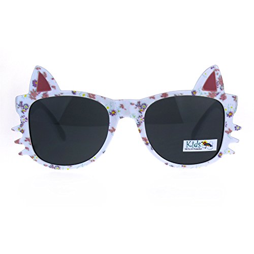 (SA106)/Accessories/Eyewear/DIRECT FROM USA/Childern Size Flower Print Kitty Ear Whisker Horn Rim Girls Sunglasses