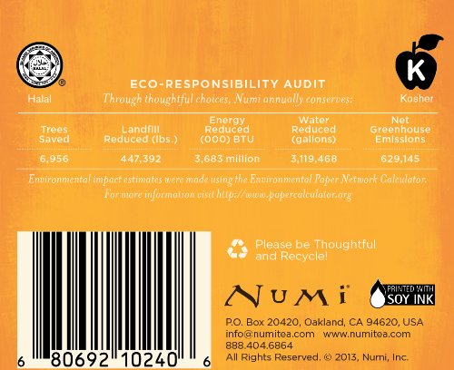 -. Feature : Case of six boxes, each box containing 16 double-chambered tea bags (total of 96 tea bags) / Made from 100% natural Pai Mu Tan tea, oranges, schizandra berries, and spices. Certified organic, fair trade, and kosher. / Smooth and delicate; luminous hue and enchanting fragrance / Certified Organic, Kosher and Halal / Ships in Certified Frustration-Free Packaging
