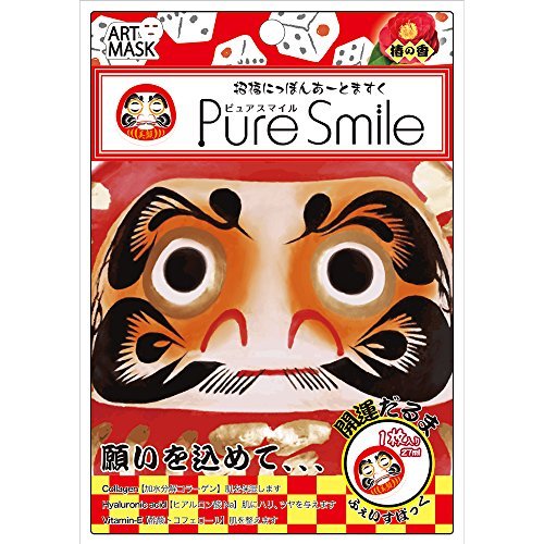 -. Feature : Pure Smile Japan Fortune Coming Art Face Mask Collagen & HA Mask x 1 sheet with Camellia Scent with Collagen, Hyaluronic Acid HA, Vitamin E, and more! / This is a very rare-to-find facial mask (face pack) which is not in common white color sheet, but in a very colorful Japanese face cover. / When you use this mask, it gives you a very surP.R.Ising appearance, take a photo and share in your SNS! / Daruma, brings you good destiny: 1 package / 27 ml beauty lotion face mask