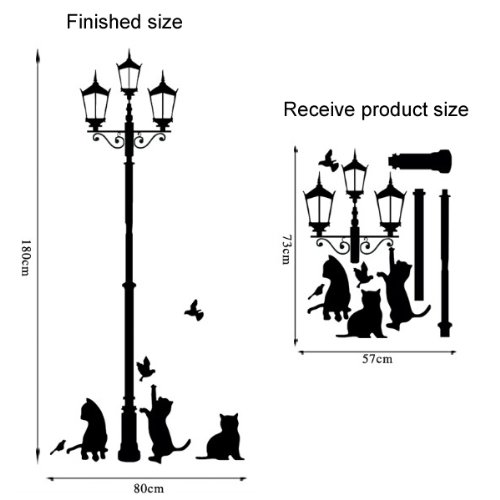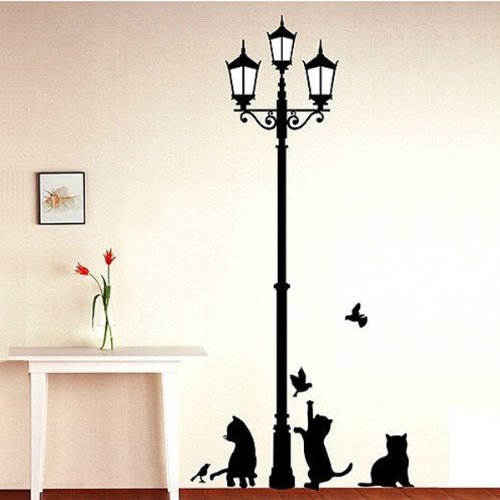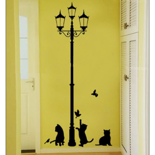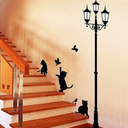 Fuloon Schwarze Katzen und Straße Licht Wandtattoo Wandaufkleber Wandsticker für Wohnzimmer Schlafzimmer Kinderzimmer