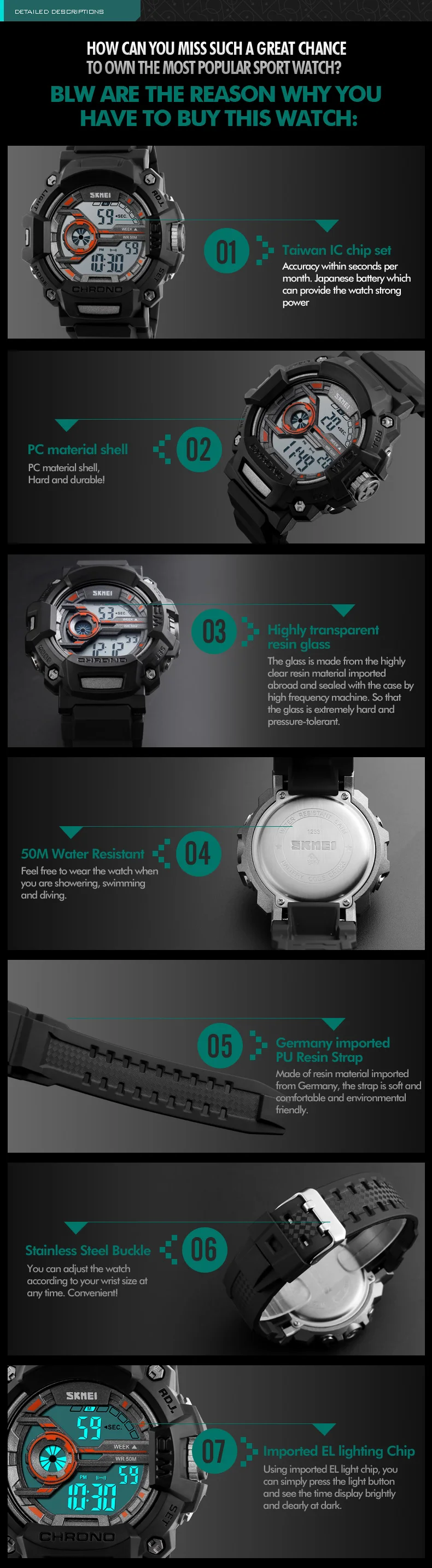 Feature:Complete Calendar,Week Display,Water Resistant,Stop Watch,Diver,Back Light,Swim,Alarm
