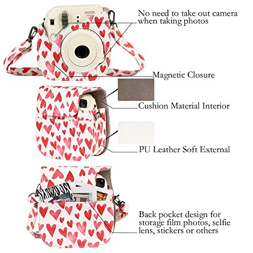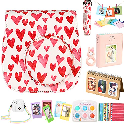 For Fujifilm Instax Mini 9/ 8/ 8+ Instant Camera Accessories Bundle Kit, Case/ 2 Mini Album/ Selfie Lens/ 6 Colors Filters/ Neck Strap/ Hang Frames/ Table Frames/ Stickers (9 Pieces, Love Heart)