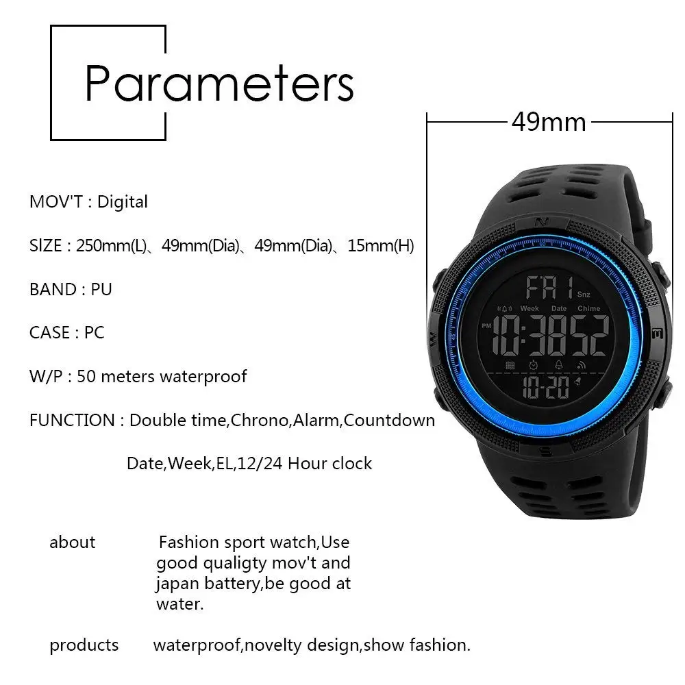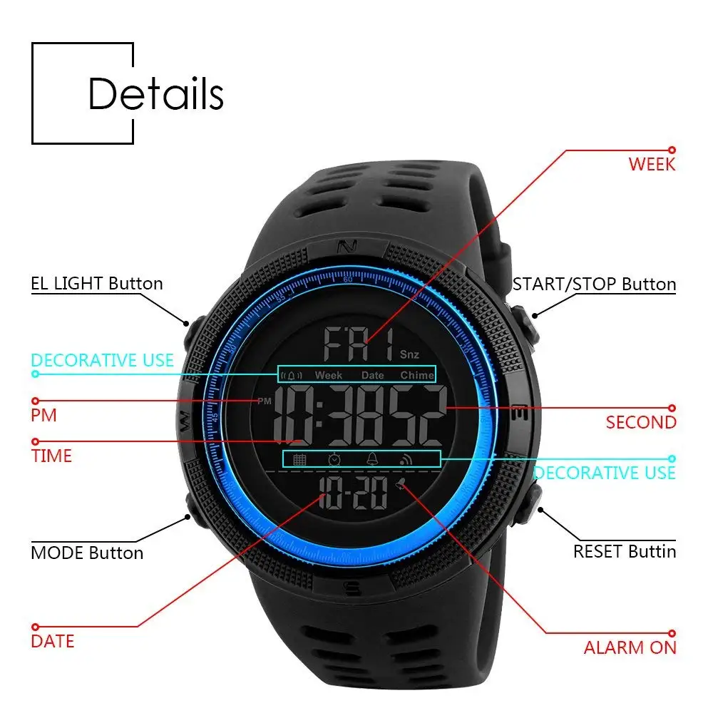 Feature:Auto Date,Complete Calendar,Water Resistant,Chronograph,LED display