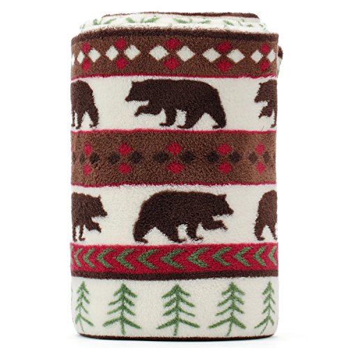 COSMOZ Canada Bear Green Pine Pattern White Background Soft Lightweight Coral Fleece 230GSM Blanket Throw 50" x 60"