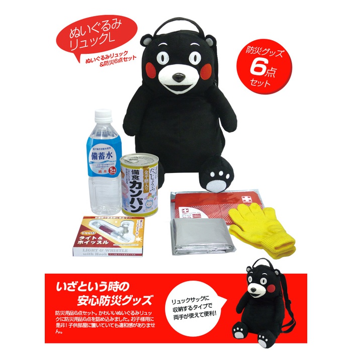 원본상품명: 子供用防災セット!くまモン防災バッグBR-923 くまモン ぬいぐるみリュックL&防災6点セット子供用に!くまモン防災リュック02P03Dec16