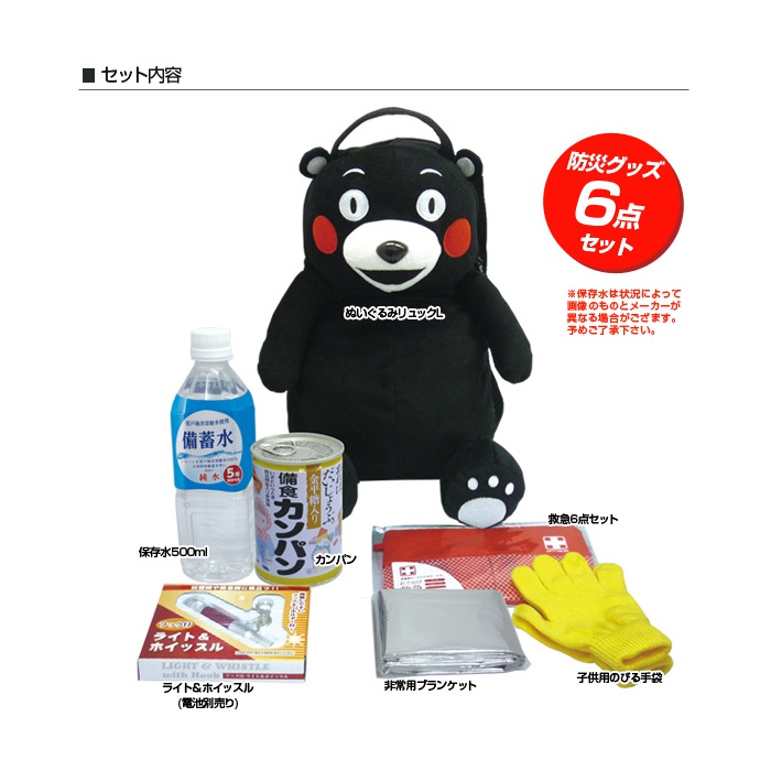 【지진/재난/대비/방재/상품】 어린이용 방재 세트! 쿠마용 재 백【BR-923 곰 몽 봉제인형 생존배낭 L & 방재 6점 세트】어린이용으로!쿠마몬 방재 생존배낭 532P17Sep16(지진 대비 방재 세트 피난 세트)