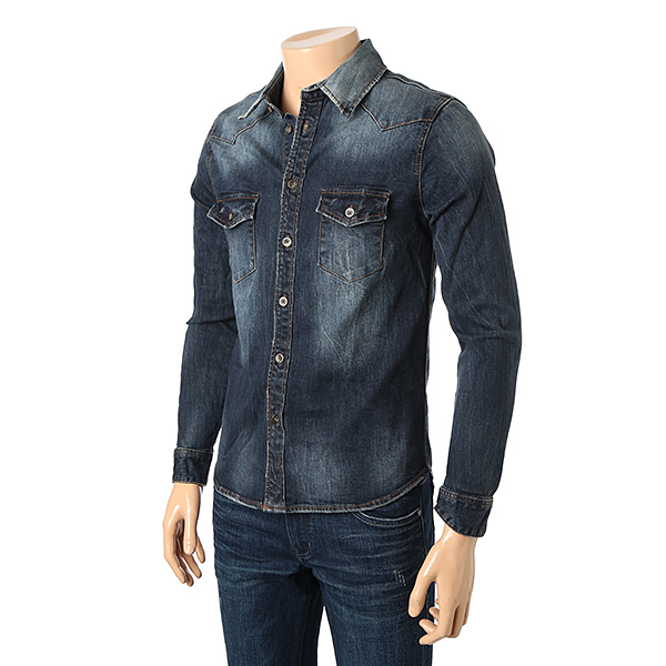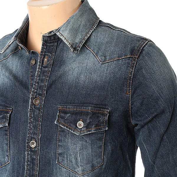 남성 바이오스톤 시와 기스구제 워싱 데님셔츠입니다.