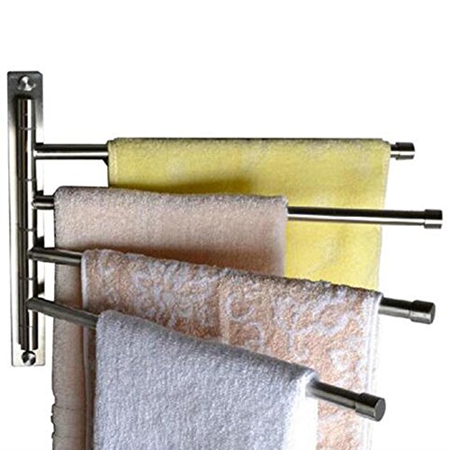 Wall-Mounted Stainless Steel Towel Racks for Bathroom Holder Towel Bars with Hooks 4-Arm (4-Arm, Sliver)
