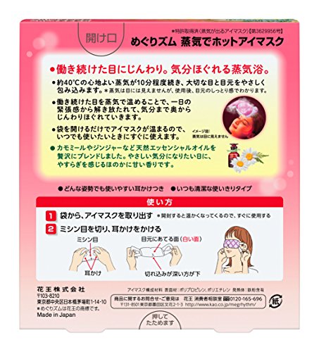 -. Binding : Misc. -. Brand : KAO -. Feature : Japanese retail packaging ( manual and instruction, if any, are in Japanese only. ) / Net weight: 5 pieces -. Label : Kao -. Manufacturer : Kao -. MPN : 1000046-$P -. PartNumber : 1000046-$P -. ProductGroup : Beauty -. ProductTypeName : BEAUTY -. Publisher : Kao -. Studio : Kao -. Title : Kao Megurhythm Steam Hot Eye Mask 5 Sheet