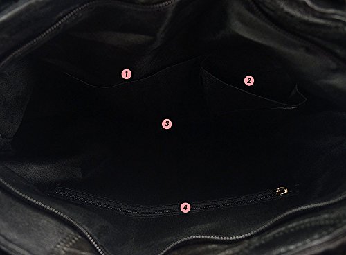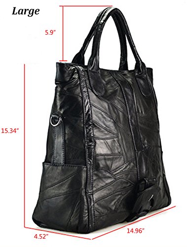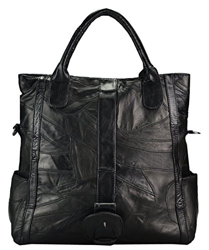 -. Feature : A stylish stunning style oversized office tote with black soft split joint lambskin leather exterior and tarnish-colored hardware accents. / This fashion satchel's fabric-lined interior is incredibly spacious, and it comes complete with 2 slip pockets, 1 zippered pocket, and 1 open-top pocket. For additional storage, you can use the zippered pocket on the back exterior. / This fashionable and convenient women's hand bag can be carried by the 2 top handles or by the adjustable and removable shoulder strap. / Well made in quality split sheepskin leather,which is soft and comfortable, please clean with soft dry cloth. / Zipper closure, have 2 sizes for you to choose.