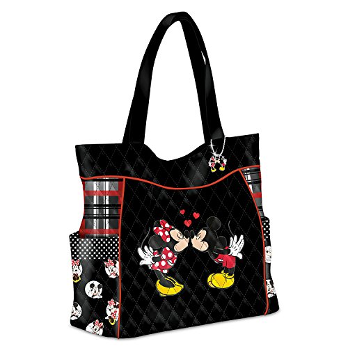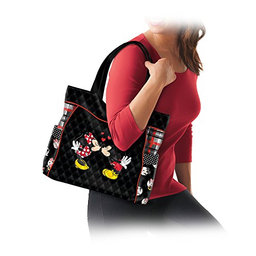 -. Feature : Share the love of Disney's favorite sweethearts wherever you go with the Mickey and Minnie Love Story Tote Bag, a Bradford Exchange fashion debut / Licensed from Disney / Uniting designer style and Disney artistry based on original animation art, this expertly crafted women's quilted tote bag is filled with love-at-first-sight romance displayed by Mickey Mouse stealing a kiss from Minnie Mouse on the front! Imported. / This Mickey Mouse and Minnie Mouse tote bag feature a custom plaid design on the sides, along with pockets boasting a polka dot pattern, additional portraits of the adorable pair, and red piping trim / For important information regarding sales tax you may owe directly to your state, please check our Storefront Page by clicking on the storefront link above, and then selecting the Policies Tab
