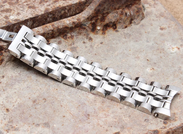 | [해외]실버 시계 스트랩 솔리드 스테인레스 스틸 시계 밴드 팔찌 곡선 엔드 20 미리메터 |