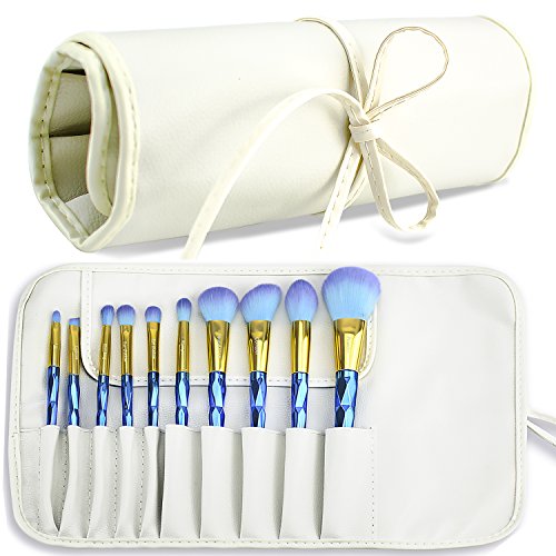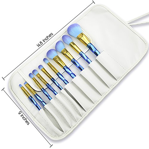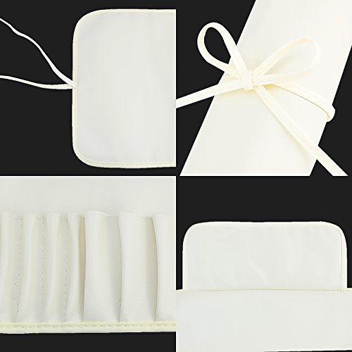 DeroTeno Makeup Brush Rolling Case Pouch Holder Cosmetic Bag Organizer Case with Belt Strap (Brushes not Included),White