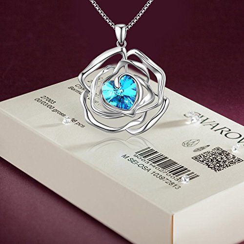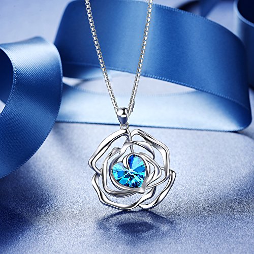 ♥SIZE♥ Pendant Height: 1.2'' * 1.2''| Chain Length: 16''+2''| Tear Drop Shape Lobster Clasp| Hollow Out Rose Pendant | Color:Blue