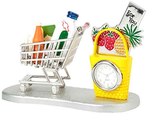 -. Title : ミニチュアクロックコレクション(MiniatureClockCollection)ミニチュア置時計 ショッピングカート 買い物かご シルバー イエロー C3322