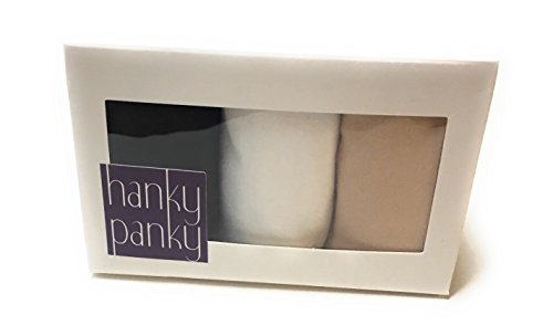 Trimmed in our beloved signature stretch lace, our Cotton with a Conscience styles will keep you feeling cool, comfortable and sexy too 3 pack of thongs in organic Supima cotton-spandex with Signature Lace waistband. Colors include black, white and chai. Original Rise fits higher on the hips. Hanky Panky's revolutionarily flattering V-front, V-back waistband-our signature design for over 25 years.Feature