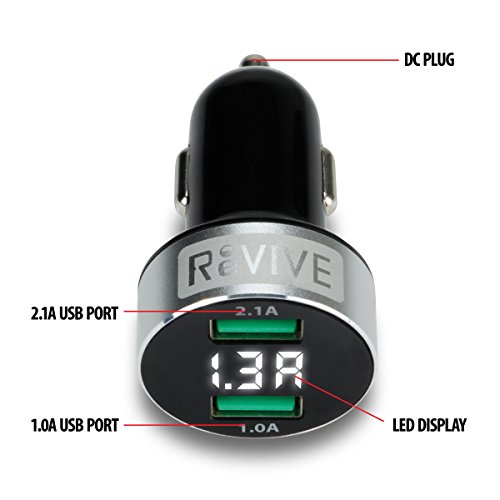 ReVIVE DV2 3.1A Dual USB Car Charger Diagnostic/Voltmeter Gauge With Battery & Charging System Monitor for 12V-24V DC , Smart Charge Technology , LED Amperage & Voltage Display with Visual Alarm Alert