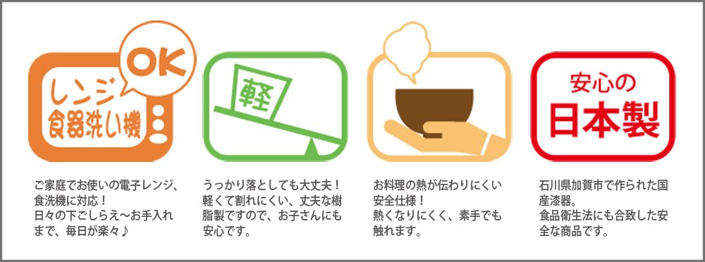 We use materials that conform to the Food Sanitation Law.