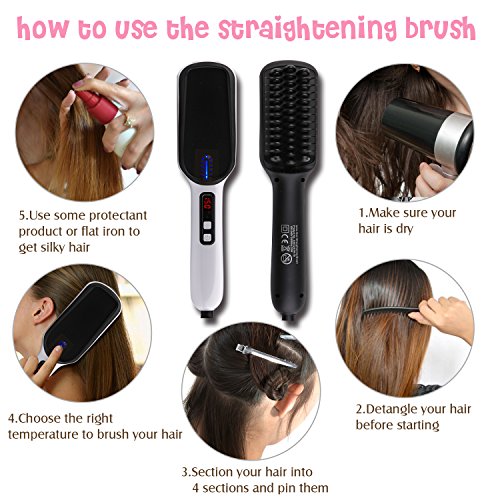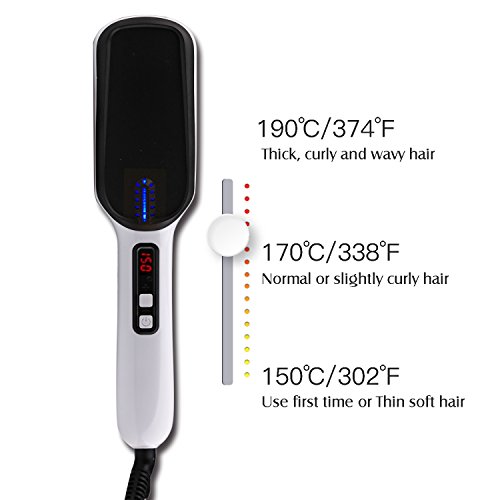- 【APPLY TO VARIOUS HAIR】the hair straightener brush temperature sets from 150℃-190℃, fits any kind of hair.even those long thick frizzy messy knotted curly hair.NOT WORKS VERY WELL FOR SPECIAL THIN HAIR