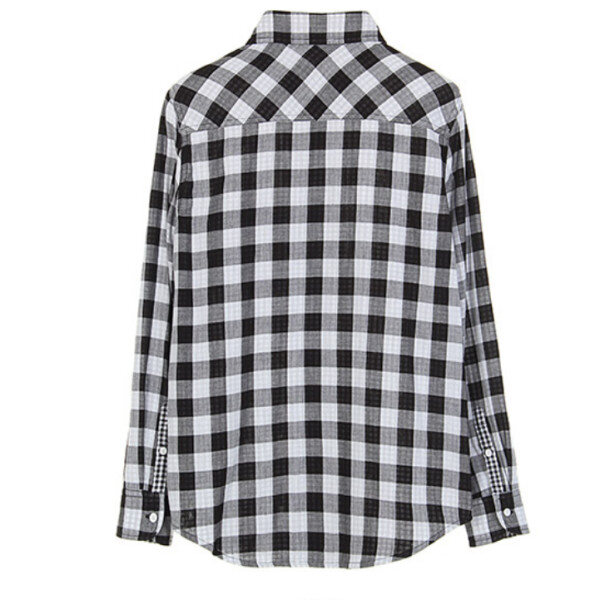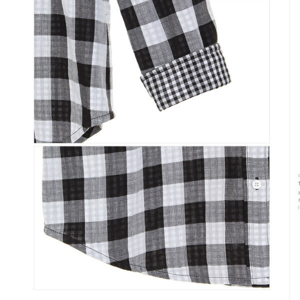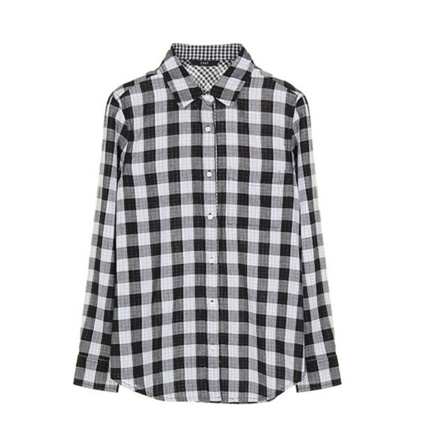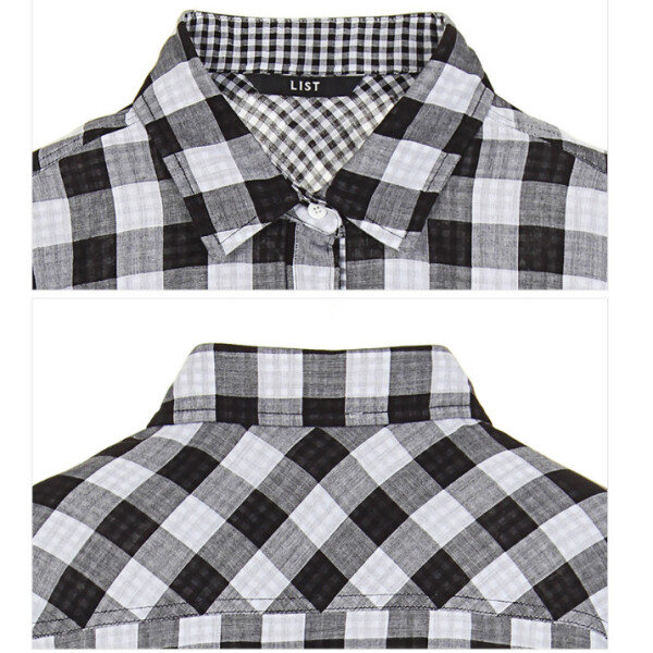 크기가 다른 모노톤의 깅엄체크 패턴을 믹스한 코튼 소재의 버튼다운 셔츠입니다