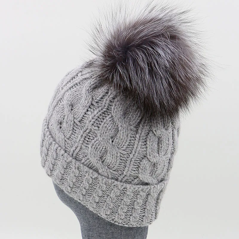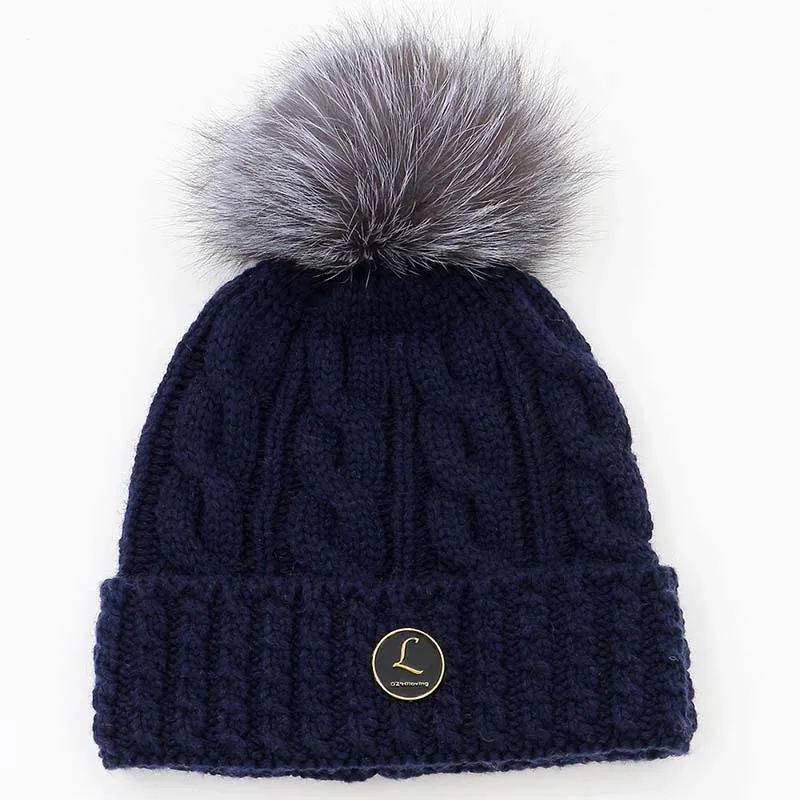 Material: 70% Wool, 30% rabbit fur, real silver fox fur pom pom Head circumference: 48cm-62cm, (18.9inch - 24.4inch)