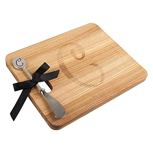 Monogram Acacia Wood Cheese Board With Spreader-C