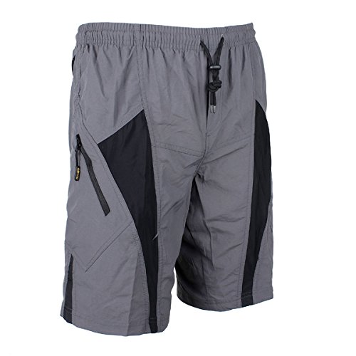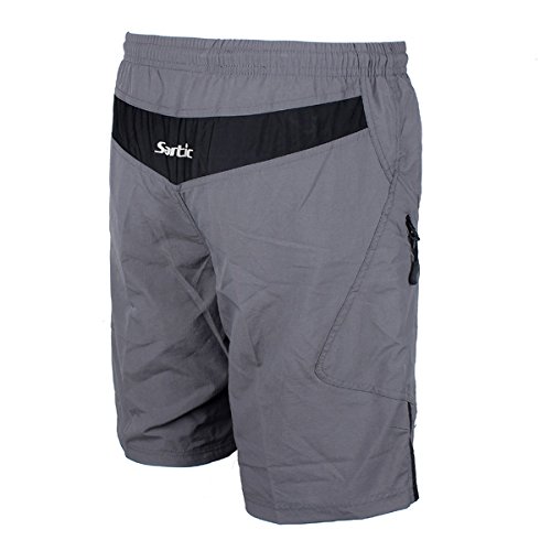 Feature : Santic Mountain Bike Leisure Baggy Loose Men's Cycling Shorts Casual Shorts With Coolmax Pad Non-Detachable Liner Specifications: Brand: Santic Size: M,L,XL,XXL,XXXL Color: Show as the pictures Material: 90%Polyester 10% Spandex coolmax silver padded Size chart: US Size S M L XL XXL Asian size (Tag size) M L XL XXL XXXL Waist(inch) 28''-30'' 30''-33'' 33''-35'' 35''-39'' 39''-42'' Front Rise(cm) 31 32 33 34 35 Length(cm) 54 55 56 57 58 1/2 cuff width(cm) 28 29 30 31 32 Attention: / Please note that you should place your order in US size, however the tags inside the items will show in Asian size. Description: Loose fit Lightweight Reflective logos/details Synthetic anti-bacterial padded Reflective logos make you safe riding at night Coolmax moisture technology ensures maxing transfer and breathability Pockets' design of the shorts makes it is convenient to bring things while riding Strategic dual density padding providing shock absorption Anti-Microbial treatmen / t prevents bacterial built up 3D Anatomical Cutting Design makes your riding comfortable and adds your riding time Maintenance Instruction: Not to wash by washing powder.Its alkali does harm for your cycling clothing.Soap is better. If you have applied petroleum jelly on your cusion, detergent is good at wiping out oil. It is better to hand-wash cycling shorts than merchine wash but merchine wash is also ok. Quick dry: let the pad up and the water will flow down. Let the pad dry in the su / n, which is the best way let sunshine to kill the bactieria. Wash: Do not dry clean Do not tumble dry Wash with cool water Do not brush, Do not bleach Package includes: 1 x cycling shorts Disclaimer: About size:Size chart for the reference only,the measurement error range of 1-3 cm,the size is (cm). About color:Slight color difference may exist under certain circumstances such as screen display resolution variation, different lighting environment etc, which is not expected to be seen a / s a quality issue.