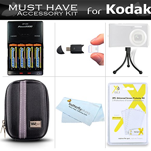 Must Have Accessories Kit For Kodak PIXPRO FZ43, FZ41, EasyShare C1530 Digital Camera Includes USB 2.0 Card Reader + 4AA High Capacity Rechargeable NIMH Batteries And Rapid Charger + Case + More