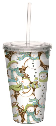 Tree-Free Greetings 80314 Where's Snowman? by Debbie Mumm Artful Traveler Double-Walled Acrylic Cool Cup with Reusable Straw, 16-Ounce