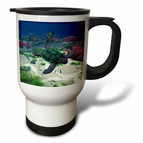 3dRose tm_172910_1 Sea Turtle Swims Through The Ocean with Tropic Fishes Corals and More Stainless Steel Travel Mug, 14-Ounce