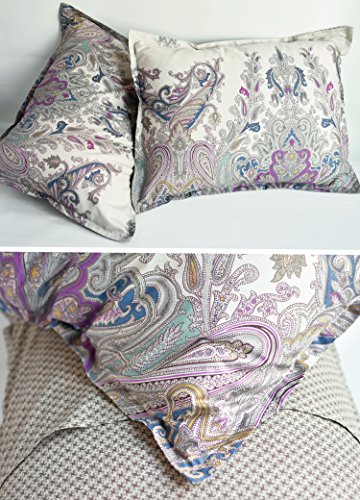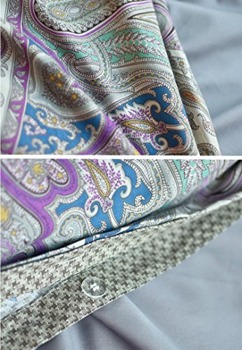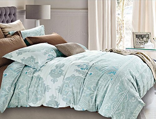 Bohemian Paisley Duvet Quilt Cover Light Purple Boho Chic 100-percent Cotton Bedding Set Oriental Indian Style Tapestry Print in King or Full Queen Size (Queen, Aqua)