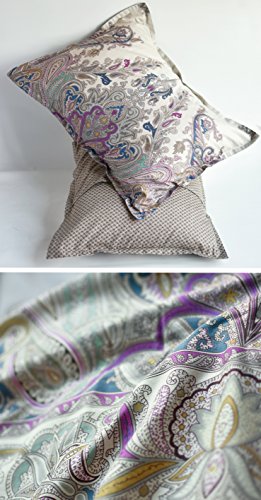 Bohemian Paisley Duvet Quilt Cover Light Purple Boho Chic 100-percent Cotton Bedding Set Oriental Indian Style Tapestry Print in King or Full Queen Size (Twin, Aqua)