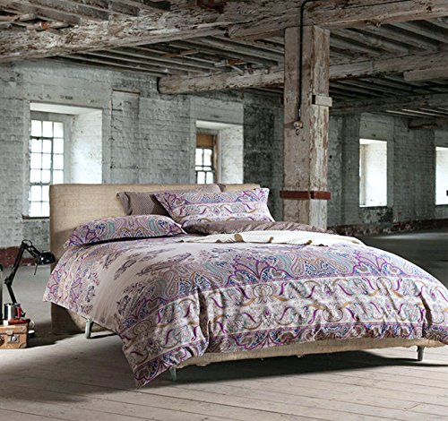 Bohemian Paisley Duvet Quilt Cover Light Purple Boho Chic 100-percent Cotton Bedding Set Oriental Indian Style Tapestry Print in King or Full Queen Size (King, Magenta)