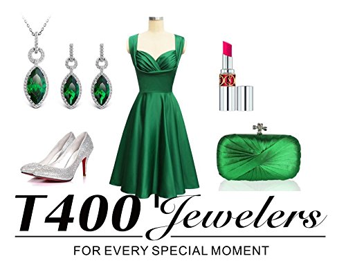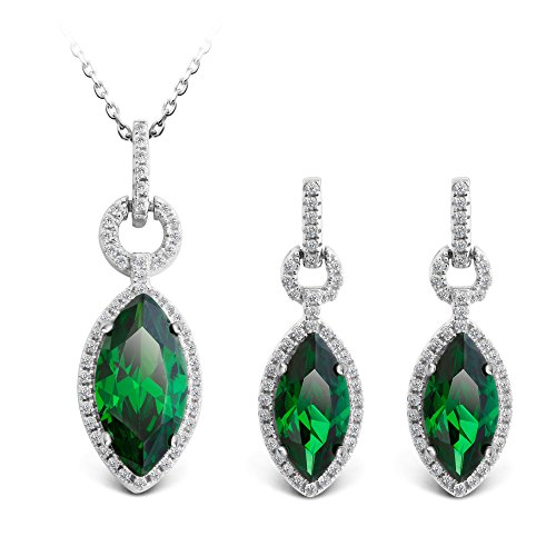 -. Title : T400 Jewelers 925 Sterling Silver Love Gift Cubic Zirconia Waterdrop Pendant Necklace & Earrings Luxury Jewelry Sets, Green