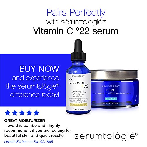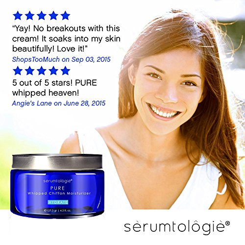 sérumtologié® PURE Whipped Chiffon Moisturizer is an all natural, vegan moisturizing cream that instantly nourishes the skin without any pore-clogging ingredients. Our lightweight formula enhances your body's hydration level by improving the skin's ability to retain moisture, revealing a more radiant, youthful complexion. Our lotion consists of organic ingredients including jojoba oil, shea butter and olive fruit oil to deliver deep moisture, visibly nourish your skin, and restore skin elasticity. Enjoy a smoother complexion with fewer fine lines and wrinkles thanks to the gotu kola and horsetail extract whipped to perfection in our moisturizing cream.