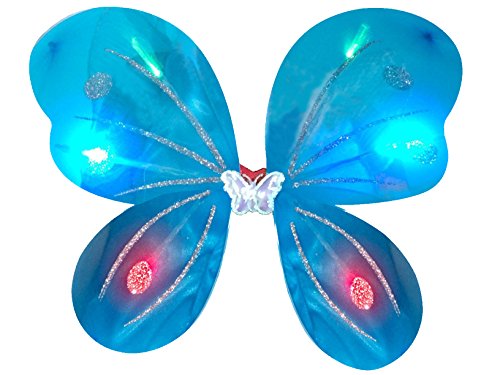 Butterfly wings is the perfect costume accessory to many of your favorite girl costumes. Ideal for girls who wants to become a beautiful fairy, butterfly or Tinkerbell. To activate your glow in the dark fairy wings, press the button on the battery pack. Multicolor LED lights flash continuously. The lightweight, compact size wings are a sheer turquoise material with glittery designs. Light Up / glow in the dark butterfly wing costume for girls is the ultimate costume accessory! Affordable, adorable and matches everything. Add LED Light Up wings to any outfit and *voila* you are a pretty fairy princess or a fabulous butterfly! Light Up Turquoise Fairy Wings also make great party favorites for little birthday girls with big imaginations. Match it for your Halloween costume, Tinkerbell costume or simply as a beautiful butterfly. Tags: girl costume, costumes for girls, butterfly wings, fairy costumes, butterfly wing, costume accessories, tinkerbell costume, costume wings, fairy wings, costumes for kids, girls' costumes, cheap costumes, costumes and accessories, costumes accessories, butterfly costumeFeature