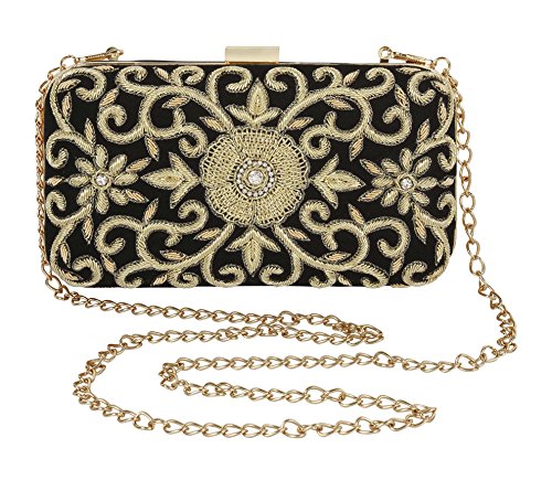 (Purse Collection)/Accessories/Handbags/DIRECT FROM USA/Purse Collection Black Handmade Bridal Clutch With Embroidery Work Purses For Women's
