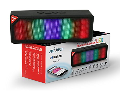Feature : ADVANCED BLUETOOTH TECHNOLOGY - Abcotechs multi-color flash LED Bluetooth speaker is an incredibly powerful speaker with Bluetooth 3.0 Technology that offers you instantaneous connection and longer bluetooth connectivity range more than 10 meters. Multiple interfaces allow the music to be played either through bluetooth, aux, microSD or a TF card, or even a radio. / MULTI-COLOR FLASHING LEDs - The multi-color dancing lights can help you create a perfect ambiance for any occasion - be it a small party at your home or a romantic dinner. The lights dance to the music and can be switched ON/OFF to suit your mood. / SUPERIOR SOUND WITH SUB WOOFER EFFECT - The crystal sound technology offers you a superior sound with impressive sub woofer effect, and that too in such a compact speaker. The speaker has a powerful sound that's pleasing to the ears yet loud enough for a small party. It also has a built-in microphone that lets you answer calls through it. / THE BEST HARDWARE - The speaker comes with Li-ion rechargeable battery that charges via micro USB port at a lighting speed and gives a playback time of up to 4 hours - thus letting you use it outdoor or on the go. The speaker body has a trendy and sporty appearance and is made up of high strength materials that makes it durable. / 100 Percent LIFETIME GUARANTEE - Abco Tech is a brand known for its superior quality, functionally efficient products and the humble and devoted customer care. We offer a 100 Percent Risk-Free Lifetime Guarantee to let you buy with confidence and just to let you know that we are standing behind our product always. So, order now and get this incredible multicolor bluetooth LED speakers - not just one but for everyone in your family.