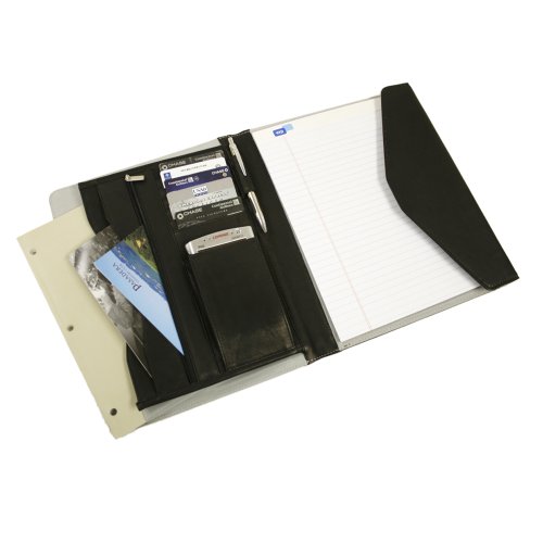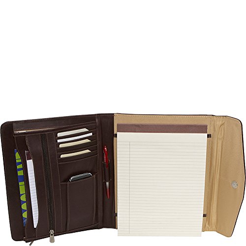 Studio : Piel Leather Publisher : Piel Leather Binding : Apparel Product Description Single magnetic opening reveals letter-size notepad (included), full organizer with multiple slots for business cards, large interior zip-pocket, cell phone pocket, pen holder, and two large open pockets for files, etc. 0